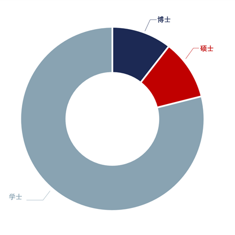 博士及博士后占10%,硕士占10%,本科占80%。